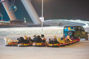 “雪圈漂移”深受不同年龄段游客的喜爱,几大串雪圈串在一起由一辆马力十足的越野车拖动,在冰天雪地中旋转加速,在冰雪地面上飞速旋转漂移,真是太刺激。