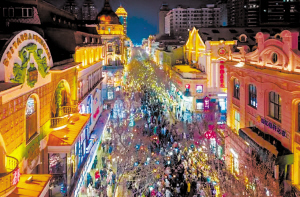 游客畅游百年老街中央大街。