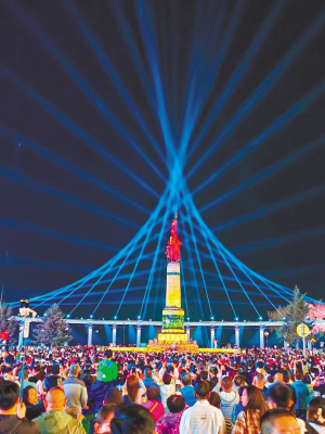 今年“五一”假期,夜幕下的松花江上灯光璀璨,松花江灯光秀吸引了上百万游客驻足。松花江灯光秀以防洪纪念塔为中心,隔江遥望太阳岛,联动太阳桥和滨洲铁路桥,在灯光变幻的同时,还有上百架无人机加入,在夜空中变换出不同的字幕或造型。游人在灯光下驻足拍照,与灯光秀融为一体。如今,这种沉浸式体验已经成为冰城文旅的新趋势。
