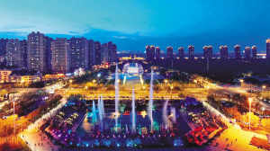 群力音乐谷喷泉上演炫目光影秀。本报记者 孙岩摄