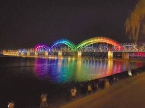 滨洲铁路桥变成彩虹桥。本报记者 周辰摄