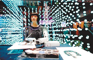 机器人“艾达”在画画。 据新华社电 苏富比拍卖行8日以高达108.48万美元(约合779万元人民币)拍出人工智能(AI)机器人“艾达”的画作《AI之神》。这一价格远超先前的预估价格。