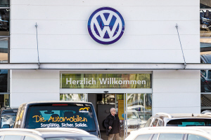 2020年5月7日,在德国首都柏林,一名男子走出一家大众品牌汽车经销商店。 美国总统特朗普威胁自6月1日起对进口自欧盟的商品征收50%关税,特朗普的新威胁招致欧盟强烈不满。德国有研究显示,此举可能导致德国经济在2025年至2028年间累计蒙受2000亿欧元损失;若欧盟实施对等反制措施,至2028年经济损失规模可能扩大至2500亿欧元。