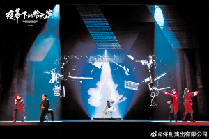 音乐剧《夜幕下的哈尔滨》彩排现场。 本报讯(记者 于秋莹)6月18日,音乐剧《夜幕下的哈尔滨》在北京进行首次彩排试演。
