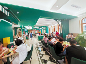 老鼎丰靖宇街店二楼“慢享区”人气爆棚。 ■温蕊宁 本报记者 李佳琪文/摄