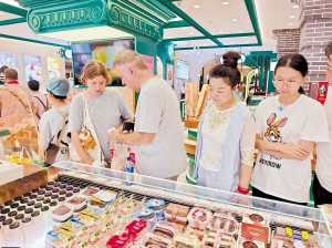 琳琅满目的老鼎丰食品吸引中外游客。 ■本报记者 李佳琪文/摄