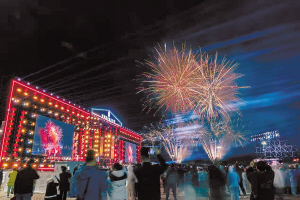 市民游客欣赏烟花秀。 本报讯(记者 王丹 李木双)当无人机编绘的龙凤遨游天际、立体爱心拥抱“中国”,当最后一束烟花绚烂绽放,由敷尔佳冠名的“月满中秋 共贺华诞”哈尔滨冰雪大世界“双节”特别活动,于10月8日21时圆满落幕。8天时间里,园区以多元活动吸引27.35万人次打卡,留存下属于冰城与游客的温暖记忆。