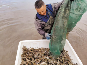 在通河县虾兵蟹将家庭农场内,宋全穿上水裤下到池塘里,吃力地拽起一条网,将几十斤螃蟹一股脑倒入大盆中。“一夜工夫,网都装满了!”宋全的脸上洋溢着丰收的喜悦,不无炫耀地对记者说。