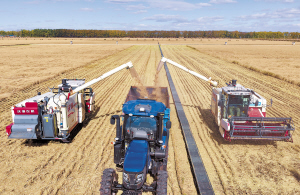 寒露时节,黑龙江省各地抢抓农时忙农事,田间地头一片繁忙景象。 新华社发