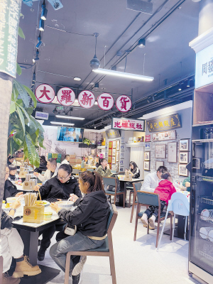 店内食客络绎不绝。 本报讯(记者 杜菲菲文/摄)“国庆假期,店内客流量比暑期增长了近一倍。”谈起这个繁忙假期的收获,中华巴洛克历史文化街区同发面馆负责人肖磊说,街区内多元品牌持续入驻,互动体验场景推陈出新,“街区人气越来越旺,我们的生意越来越红火。”