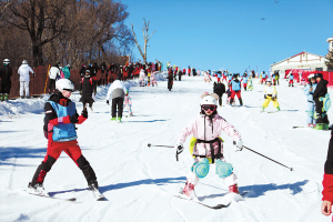 雪道旁的初级练习区,一名来自广东的3岁女孩裹着厚厚的滑雪服,像个圆滚滚的小团子。在爸爸的搀扶下,她小心翼翼地挪动雪板,脚下的雪发出“咯吱咯吱”的轻响。当第一次独立滑出两米远时,她张开双臂欢呼起来,小脸涨得通红:“爸爸,雪好软,会飞呀。”爸爸赶紧上前抱住她,帮她拂去头上的雪,笑着说:“这是宝宝人生第一滑,特意带她来感受‘尔滨’的冬天,没想到她一点都不怕,还越玩越上瘾。”(下转第四版)