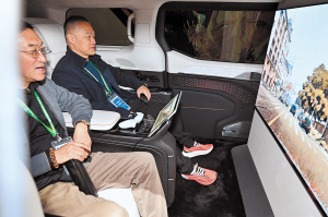 在索尼展位,观众在沉浸式座舱内体验索尼车载娱乐系统。这款车载娱乐系统可艺术化渲染车窗外动态景观,提升乘客的出行体验。