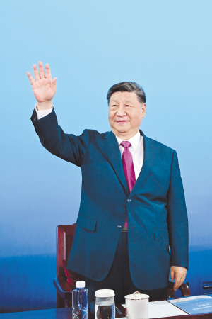 11月9日晚,中共中央总书记、国家主席、中央军委主席习近平在广东省广州市出席中华人民共和国第十五届运动会开幕式并宣布运动会开幕。这是习近平在主席台上向大家挥手致意。