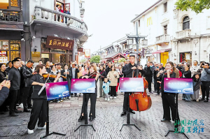 哈尔滨交响乐团杭州快闪演出现场。 本报讯(记者 于博洋)11月8日至9日,由黑龙江省文化和旅游厅主办的重点客源地旅游宣推促消行暨2025年黑龙江省冬季旅游宣推活动在杭州举行,以“龙江冰雪铺银卷,‘浙’里潮声唤冬游”为主题,拉开2025—2026年黑龙江冬季冰雪旅游“百日行动”序幕。
