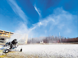 雅旺斯滑雪场造雪机马力全开。 本报讯(周文慧 记者 王东)11月11日,亚旅投集团旗下雅旺斯滑雪场迎来了冬日里最振奋人心的时刻,造雪机依次轰鸣启动,晶莹的雪粒如漫天碎玉倾泻而下,在山野间铺展开银色的基底,正式宣告该集团这个冬季运营工作全面拉开帷幕。