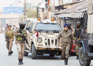 11月15日,在印控克什米尔首府斯利那加,安全人员在发生爆炸的警察局附近执勤。 新华社发 新华社新德里11月15日电 据印度媒体报道,印控克什米尔地区一警察局14日晚发生爆炸,造成至少9人死亡、29人受伤。