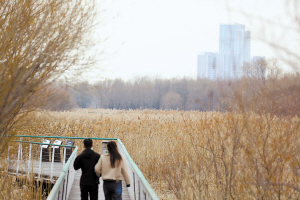11月16日,在哈尔滨文化中心公园,连片芦花吸引众多市民游客前来观赏。洁白如雪的芦花在清晨阳光中轻舞飞扬,人们或漫步于亲水栈道欣赏两岸美景,或置身于芦花丛中拍照打卡。