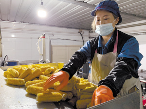 工人为鲜食玉米打包。 ■吴昌林 本报记者 刘姝媛