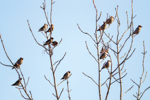 成群的太平鸟现身松北湿地。“哈报手机记者” 史敏捷摄
