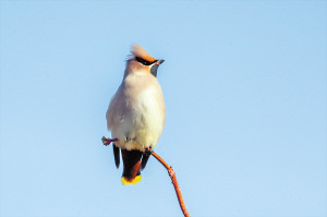 东北林业大学野生动物与自然保护地学院许青教授介绍,太平鸟在哈尔滨属于一种冬候鸟,每年11月份的时候从更北的地方飞到哈尔滨,一部分在这里越冬,还有一部分继续往南飞。留哈过冬的太平鸟一般会待到次年4、5月才离哈。现在在松北湿地看到的太平鸟应该是从北方飞来的“先头部队”,大部队也即将到来,一般较大的群会有上百只。有意思的是,还有一种叫小太平鸟的,和目前拍到的太平鸟长相十分酷似,它们往往会发生混群,难以分辨。二者最大的区别是,太平鸟的尾巴是黄色的,小太平鸟的尾巴尖是红色的。