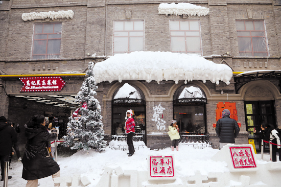 连日来,中华巴洛克历史文化街区游人如织,成为热门打卡地。街区通过技术手段打造雪天场景,让市民游客在百年老街沉浸式感受冰雪魅力。 兴宇 本报记者 韩伟摄影报道