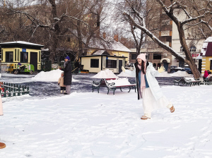 花园街历史文化街区雪景。 本报讯(邵鹏 记者 梁可心文/摄)“雪花翩然而至,暖黄色的俄式建筑群披上银装,镜头所及皆是浓郁欧陆风情与雪国浪漫的完美交融。”11月27日,在花园街历史文化街区打卡的广西游客吴女士说,刚到哈尔滨旅游,就赶上一场冬雪,太幸运了。步入“黄房子”百年建筑群,听着悠扬的歌曲,仿佛走进了电影镜头。