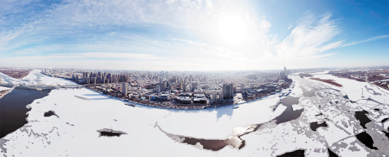 11月27日早,哈尔滨一派银装素裹的景象。白雪覆盖的松花江,犹如一幅恢宏的水墨画。 本报记者 刘洋摄影报道