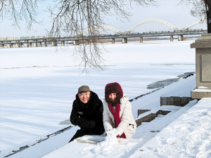 27日上午,“强哥强嫂”在松花江畔赏景玩雪。 ■实习生 李玉鑫 本报记者 黄晏君文/摄