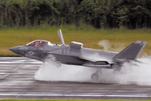 11月25日,一架美国F-35战机在波多黎各塞瓦一处军事基地降落。 新华社发 新华社北京11月27日电 到访多米尼加的美国国防部长赫格塞思26日证实,美军人员和飞机将“临时部署”在多米尼加,美国希望将类似合作模式推广至更多国家。