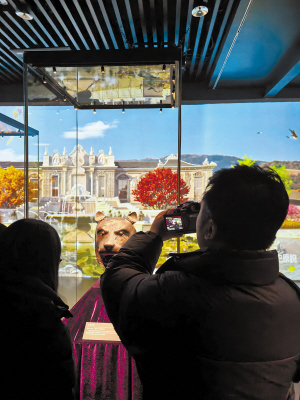 为打破“千城一面”的展陈模式,此次特展深度融合哈尔滨中西合璧文化气质与冰雪美学特色,以现代科技赋能文物叙事,打造专属沉浸式体验。三折幕沉浸式投影与互动装置完美复原了圆明园海晏堂大水法的流水声、机械运转声,更演绎了四季景观变化,站在被兽首环绕的展厅中央,仿佛穿越回到当年“万园之园”的盛景;OLED全息展柜技术让遂公盨上的每一个铭文、凤鸟尊上的每一片羽纹都能通过高透明度OLED显示屏清晰呈现;AI动态复现技术将战国嵌错社会生活图画壶上的纹饰实现了毫米级动态复现,生动还原战国时期贵族采桑、射猎、征战的鲜活场景。