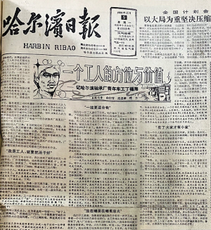 回到哈尔滨,《人民日报》很快在第二版头题刊发了通讯《一个工人的方位与价值》,并且在文尾注明“原载《哈尔滨日报》”,同时配发评论文章。之后,我在列席市委常委会会议时,时任市委常务副书记请我会后到他办公室,听取了这篇稿件的有关情况后,表示市委高度重视丁福海的宣传报道,要在全市开展学习讨论活动,让我很受鼓舞。