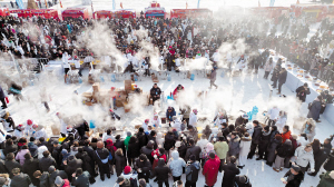 采冰节升腾烟火气。本报记者 刘洋摄 ■本报记者 张堃雷
