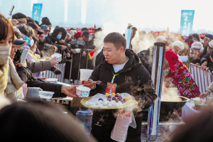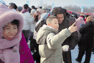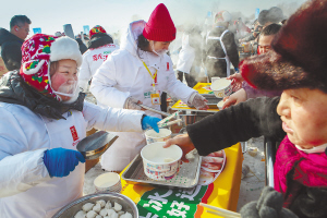 采冰节现场的美食让中外游客过了一把瘾。