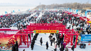采冰节现场,各种美食、非遗展示、文创产品琳琅满目,吸引中外游客参与。
