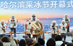 开幕式上演绎古老的采冰仪式。