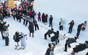 来采冰节的市民游客热情似火,服务人员忙得不亦乐乎。