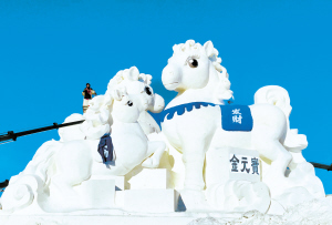 8日,雪雕匠人为“童话小马一家”穿上彩色服饰,并缀以“马上发财”“马上幸福”等吉祥祝福语,为这组有“颜值”的雪雕增加了“温度”。观赏这组大型迎宾雪雕无需购票入园,市民游客行至冰峰路即可看到。