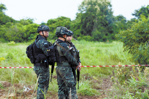 10月10日,在泰国沙缴府,泰军士兵在泰柬边境警戒。新华社发 泰国军方8日表示,泰方出动战斗机回应柬埔寨方面的进攻,此前双方使用轻武器相互射击。柬埔寨国防部发言人当天表示,泰国士兵连续第二天向柬埔寨武装部队开火,但柬埔寨方面并未还击。柬埔寨参议院主席洪森同日要求边境一线部队保持克制。