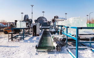 冰雪大世界新“上岗”的“型冰机”。冰雪大世界供图 本报讯(记者 节永志)日前,记者从哈尔滨冰雪大世界了解到,今年,冰雪大世界施工现场迎来了智能化升级——两台智能自动化标准冰砌块生产设备“上岗”,可快速将毛冰加工为规格统一、表面平整的标准冰砌块,为冰雪建筑施工的提质增效与精准化推进提供了关键装备支撑。