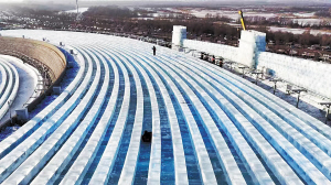 超级冰滑梯进入试滑检测阶段。 本报讯(记者 李木双 王丹)12月12日晚,第二十七届哈尔滨冰雪大世界核心项目——超级冰滑梯完成冰建施工,13日正式进入细节修正与全滑道试滑检测阶段。