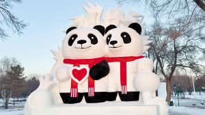 本报讯(记者 王坤文/摄)尽管太阳岛雪博会尚未开园,但是,园内的一对大熊猫雪雕已成为新晋“顶流”,提前火爆网络。