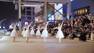 哈芭的芭蕾快闪《胡桃夹子》在上海西岸梦中心船坞码头上演。 本报讯(谢学技 记者 封娇文/摄)日前,哈尔滨芭蕾舞团以经典芭蕾《胡桃夹子》为灵感,于上海西岸梦中心船坞码头呈现两场别开生面的露天演出。艺术与自然相映,经典与创新交融,为上海的冬日添上一抹诗意,也提前拉开了《胡桃夹子》新年特别版的梦幻帷幕。