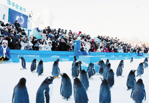 本报讯(记者 王丹)12月13日,哈尔滨极地公园首创“淘学企鹅”巡游世纪大换班,凭借100只企鹅集体巡游的壮观场面,创下极地企鹅巡游纪录。