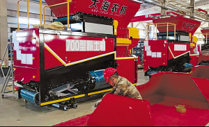 哈尔滨鲁伯特农业机械有限公司工人正在加紧生产。 ■本报记者 罗彦坤文/摄