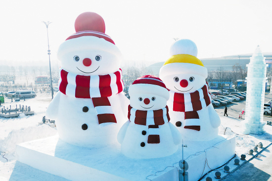 12月14日,第二十七届哈尔滨冰雪大世界东检票大厅外的“童话雪人一家”雪雕惊喜亮相,吸引市民游客拍照打卡。“童话雪人一家”高15米,用雪量近4000立方米,是冰雪大世界的“迎宾先行者”。沉稳的雪人爸爸、温柔的雪人妈妈、俏皮的雪人宝宝被刻画得栩栩如生,惹人喜爱。 本报记者 刘洋摄影报道