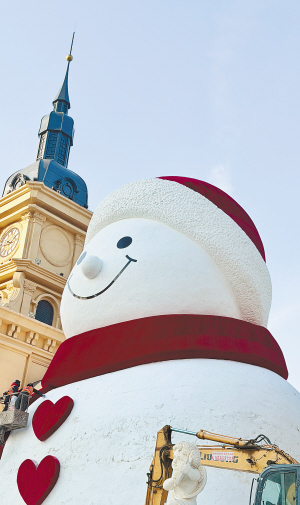 “今年咱家‘娃’,这一看就是吃得好、穿得暖,个头蹿得猛,看着就喜庆。”15日午后,音乐长廊聚满了见证大雪人完工的市民游客。家住附近小区的富鑫老人告诉记者,从大雪人开建,他每天都要来音乐长廊遛弯儿,拍照片发给全国各地的老伙伴,汇报“自家娃”的成长情况。“今天终于‘长’好了。你看,瞅着白白胖胖的,格外喜庆,看着心情就好。”