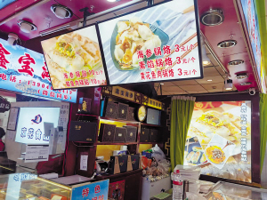 商家推出的新品锅烙。 本报讯(记者 董艳春文/摄)“自从下雪后,游客更多了。”道里菜市场业户告诉记者。12月14日,道里菜市场人头攒动,一些应季新品小吃格外引人注目。