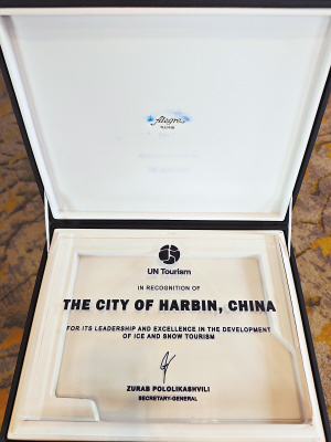 本报讯(记者 封娇)12月16日,“世界旅游经济论坛·黑龙江2025”在哈尔滨举行,联合国旅游组织授予哈尔滨市“世界冰雪旅游卓越城市”。