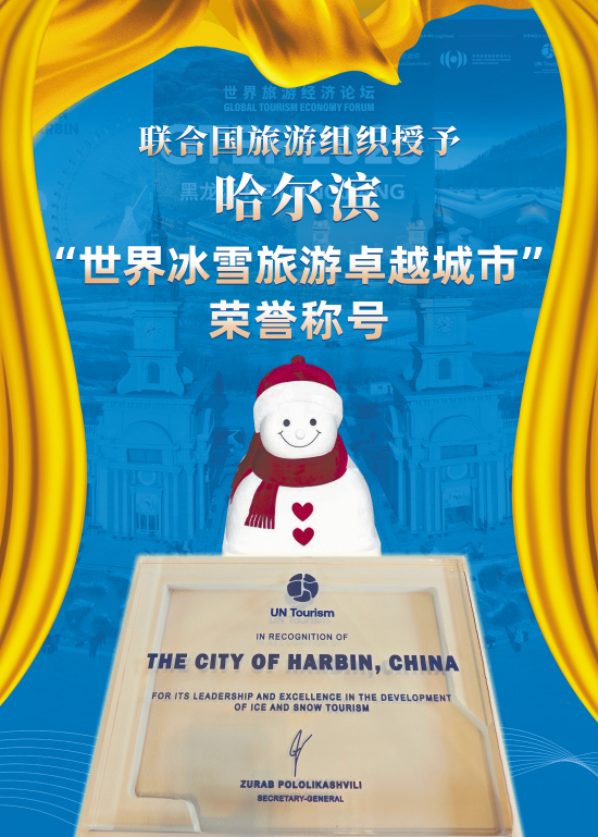 联合国旅游组织授予哈尔滨“世界冰雪旅游卓越城市”荣誉称号