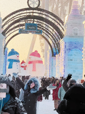 “特意带着家人来感受哈尔滨的冬天,没想到没等来自然雪,却收获了园区专属的雪景惊喜,太浪漫了!”来自杭州的游客王先生笑着说。